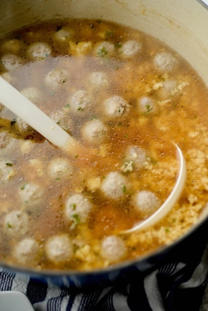 Once torturous church was over, we’d have Easter dinner at my house. My mom always made Sciusceddu (pronounced shoosh-yeah-da) or as I like to call it, ball soup.